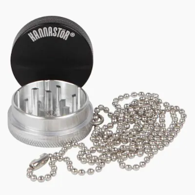This 1.25? 2 piece Kannastor grinder features a ball chain necklace allowing it to be worn as a pendant. Despite its compact design, these grinders remain fully functional making them one of the easiest, coolest portable herb grinding options in existence!