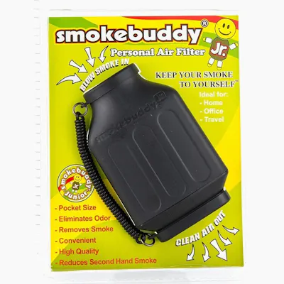 The Smoke Buddy Junior is your very own personal air filtration system that you can use anywhere you do not want to produce a smoke smell. Use it at home, in the office, in the car, or in your dorm. Simply unscrew the lid, blow in your smoke and watch the Smoke Buddy go to work blowing out odor-free air.