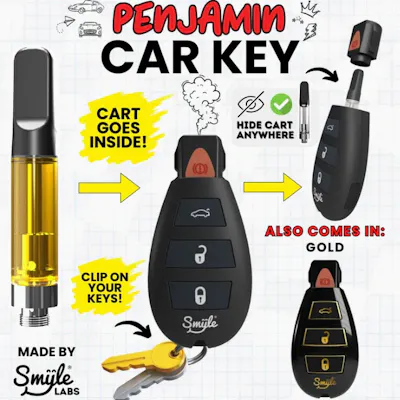 Introducing the Car Key Penjamin by Smyle™ Labs—a battery and car key in one! This clever fusion of stealth and functionality brings you a unique way to enjoy aromatherapy on the go. Designed to look just like a real car key, the patented Car Key Penjamin offers both convenience and discretion. It’s compatible with most standard 0.5g and 1g aroma cartridges (cartridges not included) and crafted from high-quality, durable materials.