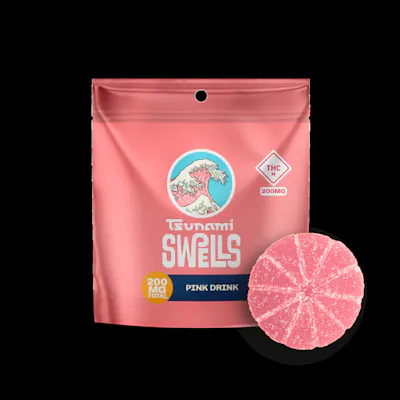 Tsunami Gummies | Pink Drink | 200mg HIGH POTENCY SINGLE SERVE GUMMY Inspired by your favorite iced café treat, Pink Drink delivers a smooth swirl of sweet strawberry and creamy vanilla in this 200MG High Potency Single Gummy. It’s rich, fruit-forward, and unapologetically indulgent. Formulated for high-dose consumers, Pink Drink is precision dosed and made for those who like their flavor bold and their elevation bigger. Why You’ll Love It: 200MG THC per gummy – For seasoned users who ride heavy Sweet Strawberry & Vanilla Flavor – Like sipping your favorite pink latte Limited-Time Pink Packaging for Sept/Oct Breast Cancer – A portion of proceeds going to PRG High Potency Formula – Bold and balanced Precision Dosed – Consistent, reliable effects every time 200MG THC per piece | 1 pieces per bag Pectin based - Vegan & Gluten-Free Tsunami is crafted from premium ingredients, a proprietary blend of sugars, naturally derived flavors and utilizes a slow-cure process to ensure a market leading profile in consistency, taste and texture. The oversized pieces provide as much flavor as possible in a high-dose gummy, as well as give enough substance to be able to be cut down into smaller doses. Edibles typically take longer to show effects than other methods of THC intake. Please dose responsibly.