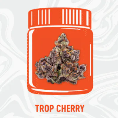 Tropicana Cherry, also known as “Tropiccana Cherry” or “Cherry Tropicana,” is a slightly sativa dominant hybrid strain (60% sativa/40% indica) created through crossing the infamous Tropicana Cookies X Cherry Cookies strains. Love a super heavy flavor? Tropicana Cherry is the bud for you. This lovely lady packs flavors of sweet and sour citrus wrapped up with overly ripe cherries and earthy nuttiness, intensifying in fruitiness the more that you toke. The aroma is similar, although heavier and sourer in nature with a sharp citrus overtone that will leave your eyes wide open. The Tropicana Cherry high is just as vibrant, with effects that will have you feeling energized, up and moving whether it's handling chores at home or hiking in the great outdoors with friends. You'll feel euphoric with an overall cerebral stimulation that gets your mind moving as it shakes off any negative thoughts. These bright and cheerful effects accompanied by its 16-21% average THC level make Tropicana Cherry ideal for treating chronic stress or anxiety, mood swings, depression and chronic fatigue. This bud has oversized rounded forest green nugs with deep purple undertones, light amber hairs and tiny frosty white crystal trichomes. (Source: Allbud)