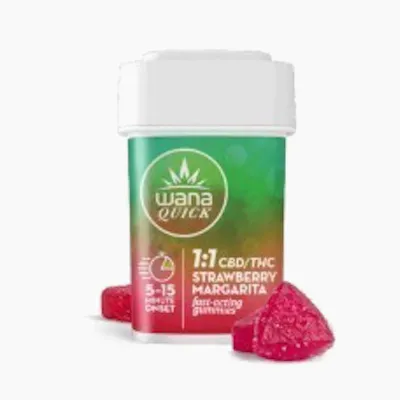 Quick Gummies Strawberry Margarita 1:1 CBD/THC Sweet and citrusy (with a hint of salt), these fast-acting gummies are infused with a balanced ratio of CBD and THC.