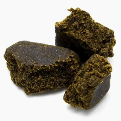 Dry flowers are sifted and screened before being pressed in the traditional Afghan method. Soft and pliable texture. Black on the outside and dark green/brown on the inside, the smoke is spicy and high THC.