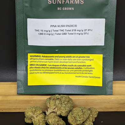 Pure Sunfarms’ cut of Pink Kush from BC’s Vancouver Island is a coastal relative of the legendary OG Kush. This special strain is known for its strong aromas, colourful flowers, and high-THC potential. Beneath a thick coating of trichomes, the dense and round buds feature forest green leaves, often with a purple hue, mixed with dark amber pistils. Pink Kush showcases gassy aromas of white pepper, orange, butterscotch, coffee, earth, and grapefruit.