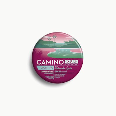 10mg THC per piece | 100mg THC total in 10 pieces -- EFFECT: Uplifting (Sativa) -- Find yourself the life of the party with Watermelon Spritz Camino Sours. Energizing, sativa-like terpenes meet sharp, juicy watermelon flavors for a splashy sweet that will leave you feeling refreshingly enlivened. -- TERPENES: • Limonene • Beta-Caryophyllene • Linalool • Alpha-Pinene -- INGREDIENTS: Organic Tapioca Syrup, Sugar, Gelatin, Malic Acid, Natural Flavors, Citric Acid, Cannabis Extract, Fruit and Vegetable Juice for Color, Natural Terpenes, Coconut Oil, Carnauba Wax