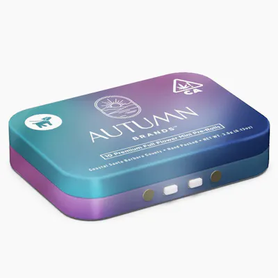 cross: LA Pop Rockz x PPP Purple Carbonite is a beautiful and frosty purple bud. This cultivar was bred by SkunkHouse, pheno-hunted by Haze Valley Nursery, and grown by us at Autumn Brands. This strain provides a different level of relaxation! The effects of smoking this Purple Carbonite go straight to the dome, calming anxiety and your busy mind. This varietal has a strong, hoppy nose with a gas back-end, and the smoke is very similar (and very tasty!). Purple Carbonite is a heavy-hitting strain that will help force you to take that much needed break you deserve. Autumn Brands is a family/50% women owned and operated company. We grow pesticide free plants on our farm in coastal Santa Barbara County. All of our flower is hang-dried and hand trimmed and gets a slow cure before packaging. We Produce all our prerolls and hand fill all our jars on-site to ensure the highest quality, plus they come with a boost humidity pack to keep it that way. What that means for you is consistency and quality you can trust every time because we don't rely on other people. We're on a continual harvest schedule meaning we produce product all year round, so buy with confidence knowing that Autumn Brands is as fresh as they get. We also believe in leaving the planet a better place so we're indoor sun grown(greenhouse), we recycle our water and plant stalks and don't spray any pesticides, herbicides or fungicides. We strive to use sustainable/recycled packaging and encourage you to reuse them. From our family to yours we thank you for the support! Autumn Brands cannabis is always sun-grown, sustainable, and 100% pesticide-free. Every flower in our jars is hand-selected and receives a long, slow hang-dry to ensure the perfect cure. This allows the flower’s terpene and cannabinoid profile to peak, preserving the plant’s healing properties. Variety is another priority at Autumn Brands. We understand that it doesn’t matter how good or how clean our flower is if you don’t like what’s on our menu. That’s why we cultivate over 20 strains. Whether you like Indicas, Sativas, or Hybrids, we grow a strain for every taste. At Autumn Brands, growing cannabis is a daily devotion. We’re here to create a healthier world, one jar at a time. Autumn Brands cannabis is always sun-grown, sustainable, and 100% pesticide-free. Every flower in our jars is hand-selected and receives a long, slow hang-dry to ensure the perfect cure. This allows the flower’s terpene and cannabinoid profile to peak, preserving the plant’s healing properties. Variety is another priority at Autumn Brands. We understand that it doesn’t matter how good or how clean our flower is if you don’t like what’s on our menu. That’s why we cultivate over 20 strains. Whether you like Indicas, Sativas, or Hybrids, we grow a strain for every taste. At Autumn Brands, growing cannabis is a daily devotion. We’re here to create a healthier world, one jar at a time.