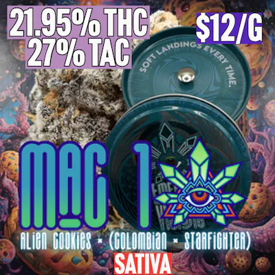 MAC #1, short for “Miracle Alien Cookies,” is a combination of Alien Cookies with a Colombian x Starfighter hybrid first bred by Oregon-based Capulator, hence Caps Cut.