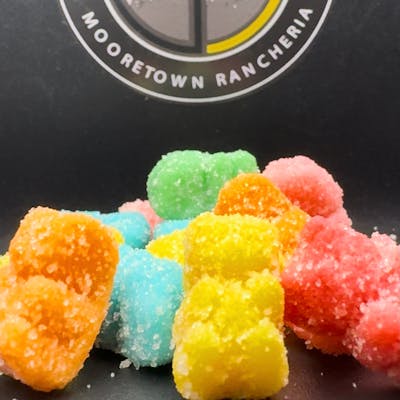 Semi Sour Neon Gummy Bears THC Infused Gummy Bears in delightful colors and flavors and powdered with a dusting of sugar crystals. Activation Time: 15 minutes – 2 hours; Duration 2-8 hours. 5 mg per piece