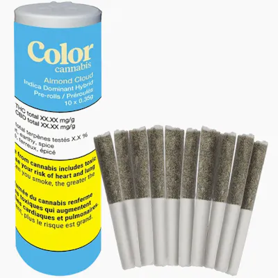 Color Cannabis Almond Cloud Pre-Rolls feature an indica-dominant hybrid strain bred from the premium genetics of Triangle Kush × Animal Mints. Known for its dessert-inspired aroma and balanced profile, Almond Cloud delivers a smooth, flavour-forward experience in a convenient multi-pack format. This cultivar produces a sweet cake-like aroma layered with earthy undertones, complemented by subtle notes of spice and vanilla. The flavour follows through with creamy sweetness and gentle kush depth, making it an appealing option for consumers who enjoy rich, bakery-style terpene profiles with classic indica structure. Each pre-roll is filled with gently milled whole flower—never trim or shake—ensuring freshness, flavour integrity, and a consistent burn. Carefully packed for an even draw, these single-session pre-rolls offer dependable performance from start to finish. Packaged in a convenient 10-pack of 0.35g pre-rolls (3.5g total), Almond Cloud is ideal for stocking up, sharing, or enjoying measured sessions without the need to grind or roll. For consumers searching for premium indica-dominant pre-rolls in Canada, Color Cannabis Almond Cloud offers trusted genetics, quality flower, and consistent flavour in a ready-to-enjoy format. Product Highlights Brand: Color Cannabis Strain Type: Indica-dominant hybrid Genetics: Triangle Kush × Animal Mints Format: 10 pre-rolls × 0.35g (3.5g total) Aroma: Sweet cake, earthy undertones Flavour Profile: Creamy sweetness with spice and vanilla notes Flower Quality: Gently milled whole flower (no trim or shake) Burn: Even, consistent draw Ideal For: Convenient single sessions, sharing, stocking up Product Type: Pre-rolled cannabis