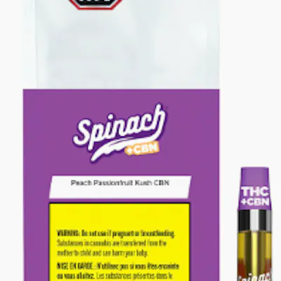 Whether you're winding down after a long day or preparing for a peaceful night ahead, enjoy 1.2g vape with ripe peach and tangy passionfruit flavour notes. The Spinach Peach Passionfruit Kush 1.2g vape is a combination of THC and rare cannabinoid CBN in a 1:10 CBN:THC ratio that'll create a mellow and dream high for the perfect restful session experience. Inspired by a strain with Passion Fruit lineage, enjoy this fruity vape experience.