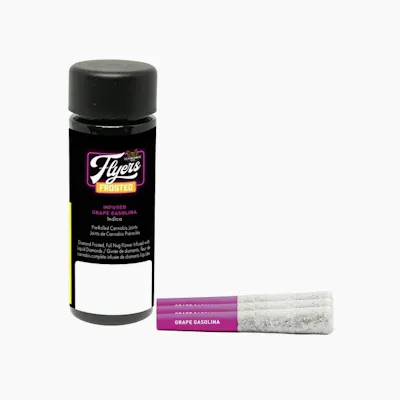 Claybourne Frosted Flyers Infused Grape Gasolina pre-rolls are THCa diamond frosted, terpene enhanced and infused with liquid diamonds. These 3x0.5g pre-rolls are indica-dominant and boast 40-50% THC. Looking for bold flavour and a potent experience? Look no further than Claybourne Frosted Flyers.