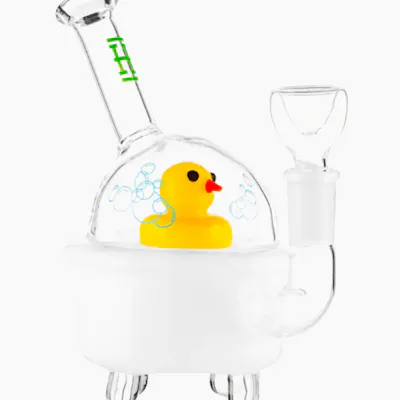 The 6" Hemper Ducky Bong is a fun, compact, and limited-edition piece designed to brighten up your smoking sessions. Standing at 6 inches, this micro bong is perfect for travel or on-the-go use without sacrificing performance. Its showerhead percolator maximizes smoke diffusion, creating more bubbles for smoother, cooler hits. Crafted with 3mm thick durable glass, it’s both portable and sturdy, combining playful design with reliable functionality. The cute ducky motif adds a whimsical touch, making this bong as enjoyable to look at as it is to use. Highlights: 6-inch micro bong: Compact and portable for travel or desktop use Showerhead percolator: Enhanced diffusion for smooth, cooler hits 3mm thick glass: Lightweight yet durable for long-lasting use Cute ducky design: Playful, limited-edition style that stands out