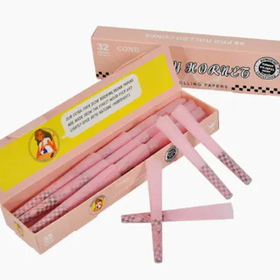 Experience effortless sessions with Lady Hornet Pink Pre-Rolled Cones, designed for smooth, slow-burning enjoyment. Made from natural, unbleached wood pulp fibers, these slim cones are free from chemical bleaching, chalk, and dyes, ensuring a clean, natural flavour with every puff. Each cone is pre-rolled with a built-in tip, making them ready to fill and use—no rolling required. The slim 78mm design promotes even burning and smooth airflow while producing minimal ash, so you can enjoy a consistent, satisfying session every time. Ideal for beginners or seasoned smokers looking for convenience without compromising quality, Lady Hornet Pink Cones combine durability, performance, and natural materials in a simple, ready-to-use format. Product Highlights Brand: Lady Hornet Size: 78mm slim pre-rolled cones Quantity: 32 cones per pack Material: Natural, unbleached wood pulp fibers Weight: 378g per booklet Features: Slow, even burn with minimal ash Built-in tips for easy use Non-GMO, free from chalk, dyes, and chemical bleaching Smooth airflow for enjoyable sessions Ideal For: On-the-go smoking, effortless pre-roll preparation