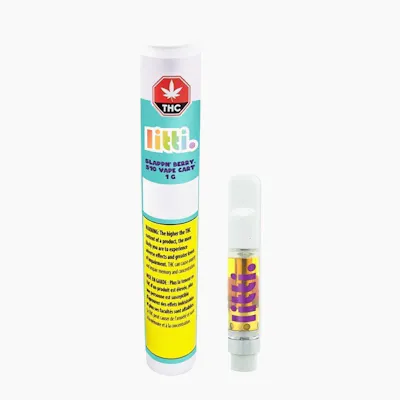 Level up your vaping vibe with LITTI's Slappn' Berry 510 Vape Cart. Packed with 1 gram of blueberry-flavored disti, this vape cart is perfect for anyone looking for a sweet and fruity hit. LITTI's Slappn' Berry hits hard and fast, delivering a potent and awesome high that's sure slap hard. And the best part? It won't break the bank! Trust us, your taste buds and your wallet will thank you. Experience the ultimate combination of flavor and THC potency with LITTI's Slappn' Berry 510 Vape Cart. So go ahead, take a puff, and get ready to get LIT.