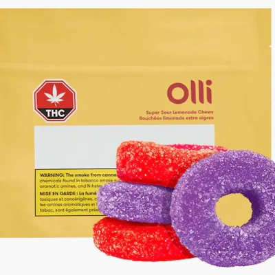 Sour Grape & Strawberry flavor takes center stage in Olli O's, boasting a unique, fun shape that promises a multisensory experience, providing candy enthusiasts with an exciting burst of flavor and texture. Elevate your taste buds with these dual-flavored, sour tangy delights, designed to captivate and satisfy your craving for a playful indulgence. 10mg THC/10mg CBD/10mg CBN Ingredients: Sugars (sugar, glucose syrup), Water, Modified Corn Starch, Glycerin, Natural flavours, Pectin, Citric acid, Soy lecithin (Soy), Medium chain triglycerides(palm), Lactic acid, Malic acid, Sodium citrate, Allura Red (colour), Indigotine Lake (colour), Allura Red Lake (colour), Erythrosine (colour), Brilliant Blue FCF (colour), Hydrogenated oil vegetable fat, Cannabis extract