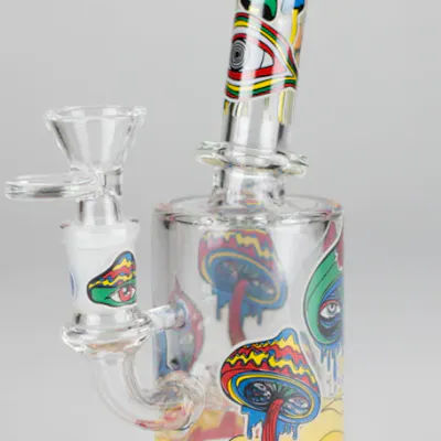 Elevate your smoke sessions with the 7" Color-Accented Magic Mushroom Glass Bong, a compact piece that blends playful design with smooth functionality. Featuring a glow-in-the-dark mushroom motif, this bong shines under low light—perfect for nighttime use, parties, or adding a unique flair to your glass collection. Built for performance, it comes equipped with a built-in percolator and water diffuser, delivering cooler, cleaner hits every time. The 14mm bowl joint ensures easy compatibility with standard accessories, while the durable borosilicate glass construction provides long-lasting reliability. Key Features: Height: 7 inches – compact, portable, and easy to handle Design: Glow-in-the-dark magic mushroom artwork with color-accented details Filtration: Built-in percolator and water diffuser for smoother smoke Bowl Joint: 14mm – fits most common accessories Material: High-quality borosilicate glass for durability Style: Fun, compact design with standout visuals Whether you’re a collector or simply want a stylish, portable bong with standout looks, the 7" Glow Mushroom Glass Bong delivers both performance and personality.