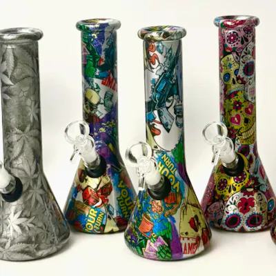Bring bold style and smooth function to your collection with the 8.5" Hydrographic Glass Bong. Crafted from durable 5mm borosilicate glass, this compact yet powerful piece is built to last while delivering consistently smooth hits. Standing at 8.5 inches tall with a 38mm diameter tube, it strikes the perfect balance between portability and performance. The bong includes a 4-inch downstem and a matching glass bowl, giving you everything you need in a 3-piece setup. Each unit showcases hydrographic assorted designs, adding unique and eye-catching patterns to every piece — making them as much a display item as a daily driver. Key Features: Height: 8.5 inches – compact and portable Glass Thickness: 5mm borosilicate for durability Tube Diameter: 38mm Downstem: 4-inch with 3-piece setup Includes Matching Bowl Hydrographic Assorted Designs – each piece is unique Perfect for both new smokers and seasoned collectors, the 8.5" Hydrographic Glass Bong combines functionality, durability, and standout style in one compact package.
