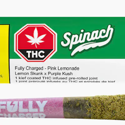 Get that summertime, thirst-quenching experience in one delicious infused pre-roll. It's a summer that never ends with our Spinach Fully Charged Pink Lemonade infused pre-roll and we're not sorry about it. Infused with the finest cold-filtered cannabis extract and a dusting of kief coating, we've leveled up the potency to sunshine level strength at 35%+ Total THC. Inspired by a strain with a Lemon Skunk and Purple Kush lineage and dialed-up with a terpene infusion, the sweet, raspberry and refreshing lemonade flavour notes are like a fresh summer breeze on your face. Spinach Fully Charged Pink Lemonade infused pre-rolls will have you ready for any park hang or patio lounge with friends.