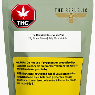 Step into The Republic, where our ethos is grounded in crafting products for the people, with a focus on quality at value. Our newest ounce bag, the Republic Reserve 25, was precisely curated to deliver a potent, indica-dominant offering cultivated with conscious care and consistency in mind. With a guaranteed minimum 25% THC and a diverse terpene profile, it promises to deliver full-bodied flavour with a bold and dank aroma that doesn't shy away from making a statement. Each bud is hang dried and slow cured, reflecting our unwavering dedication to quality and consistency. Opt for Republic Reserve 25 and join us in fostering a community where top-tier quality and value are always #ForThePeople.