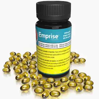 ChatGPT said: Emprise 3,000 mg CBD Softgels deliver a true-to-plant, high-potency CBD experience with 50 mg of CBD per softgel. Each bottle contains 60 softgels, totaling 3,000 mg of CBD, formulated with hemp seed carrier oil to support the entourage effect. Designed for discreet and consistent dosing, these softgels keep cannabis oil fresh and sealed from oxidative degradation, offering excellent value compared to traditional edibles. Key Features: 50 mg CBD per softgel 60 softgels per bottle (Total 3,000 mg CBD) True-to-plant formulation with hemp seed carrier oil Supports the entourage effect Discreet, portable, and oxidation-resistant dosing Ingredients: Cannabis, Cannabis Extract, Hemp Seed Oil