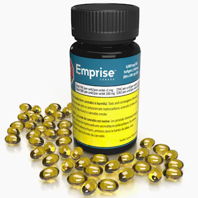 Emprise 6,000 mg CBD Softgels deliver high-potency, plant-forward relief in a discreet and convenient format. Each softgel contains 100 mg of CBD, formulated with hemp seed carrier oil to support the Entourage Effect — embracing the philosophy, “if it grows together, it goes together.” With 60 softgels per bottle (total 6,000 mg CBD), this format offers exceptional value compared to traditional edibles, while protecting the oil from oxidation for lasting freshness and potency. Key Features: 60 softgels per bottle, 100 mg CBD each (total 6,000 mg CBD) Formulated with hemp seed oil for true-to-plant synergy Discreet, precise, and easy-to-swallow dosing Fresh-sealed to prevent oxidative degradation Incredible value compared to standard edibles Ideal for consistent, long-lasting CBD supplementation Ingredients: Cannabis, Cannabis Extract, Hemp Seed Oil