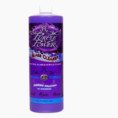 Non-abrasive cleaner for pyrex, glass, ceramic & metal. Shaking solution. Anti-bacterial All Natural Biodegradable No soaking No scrubbing Directions for use: Pour Purple Power directly into item. Cover all openings and shake vigorously for 30 seconds. Remove solution and rinse with warm water, shaking vigorously. Wash hands well. For heavily soiled items add table or kosher salt, as an abrasive, to solution & repeat above.