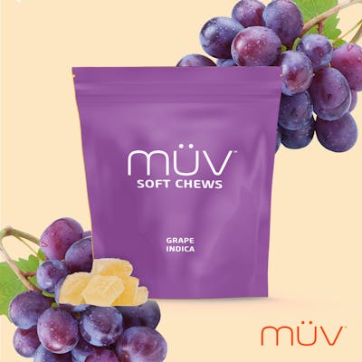 Carefully crafted and perfected by artisan confectionaries, MÜV Soft Chews deliver a consistent dose of medical marijuana and robust flavor with every bite. The classic grape candy flavor of the indica Grape Soft Chew offers a delicious and discreet medicating option for relaxation.