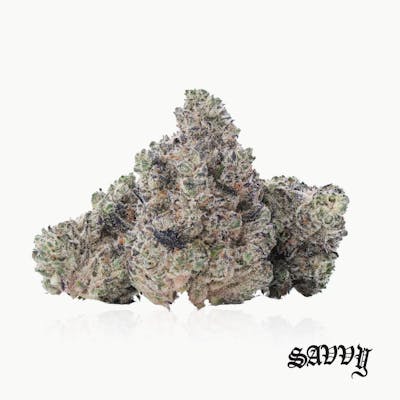 Good flower, no fluff. Savvy is your go-to for flavor, potency, and value. Bud for sesh-makers, stash-builders, and the always-stocked. Lineage: Ice Cream Cake x Grape Teeth (Grape Pie x False Teeth)