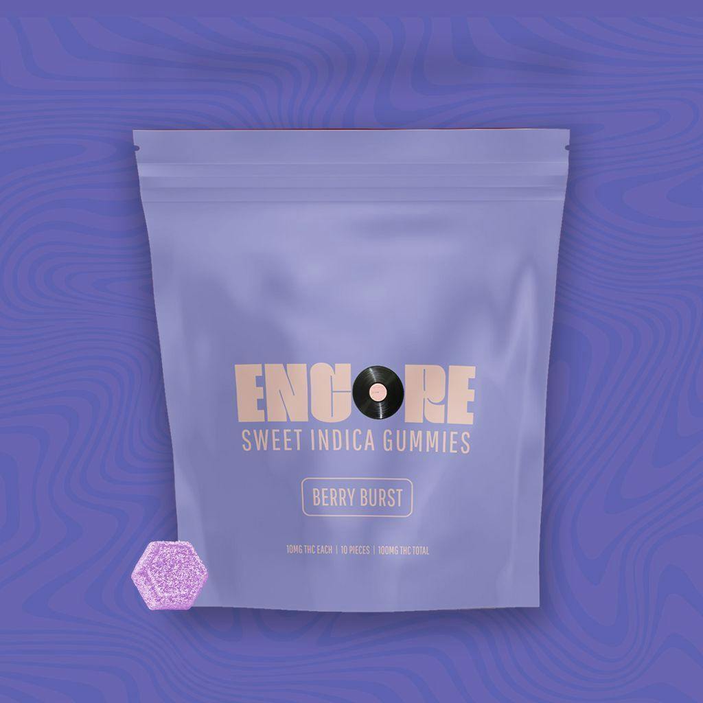 The chewy chart-toppers. The Encore lineup. Juicy and delicious, classic fruit flavors and the perfect pectin-based consistency are always center-stage. Sit back, relax, and take in the chorus of sweet strawberry, blueberry, and raspberry with Berry Burst Indica