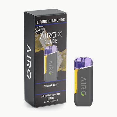 The Airo Liquid Diamonds GDP x F1 Durban 2g is a 2-gram, all-in-one vaporizer with a potent, terpene-rich Indica oil containing THCA diamonds suspended in live resin, delivering enhanced purity, flavor, and a full-spectrum high. Originating from a blend of Granddaddy Purple and F1 Durban, this product is known for its powerful, relaxing effects typical of Indica strains.