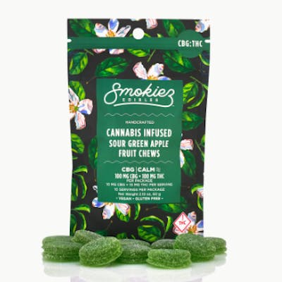 Smokiez Sour Green Apple 1:1 THC:CBG Fruit Chews 10pk 100mg Hybrid