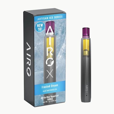 Escape into a cooler state of mind with Artisan Ice Series Frosted Dream by Airo Brands. Frosted Dream is an Indica that blends the icy acai and refreshing, crisp watermelon for a revitalizing, arctic experience. As you inhale, let the smooth and sweet notes of freshly juiced watermelon juice and tangy acai tantalize your palate. As you exhale, experience a refreshing escape, like a cool, gentle breeze. Feel calm and relaxed before a peaceful tranquil evening. Our Solventless Artisan Ice Series delivers smoother hits, bolder flavors, and unmatched purity - crafted with advanced extraction for a clean, elevated high. Crisp, icy flavors fuse with premium cannabis oil and natural botanical terpenes for a cooling twist. Expect vibrant fruit, delicate florals, and bold savory notes in every chilling, invigorating exhale.