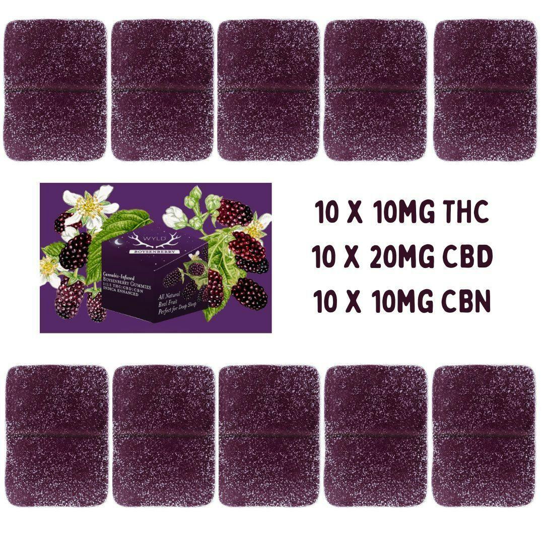 Wyld - Real Fruit Boysenberry Indica Gummies 2:1:1 CBD:CBN:THC - 10x1 Pack