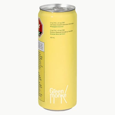 Green Monké Pineapple Coconut contains a 2:1 CBD to THC ratio. It is sweetened with erythritol and stevia. Best served over ice, garnished with an umbrella. Made without sugar, gluten or animal products.
