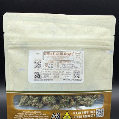 *$20 Flower Strain* Lemon Kush Headband THC:CBD 6.87%:12.02% - Osage