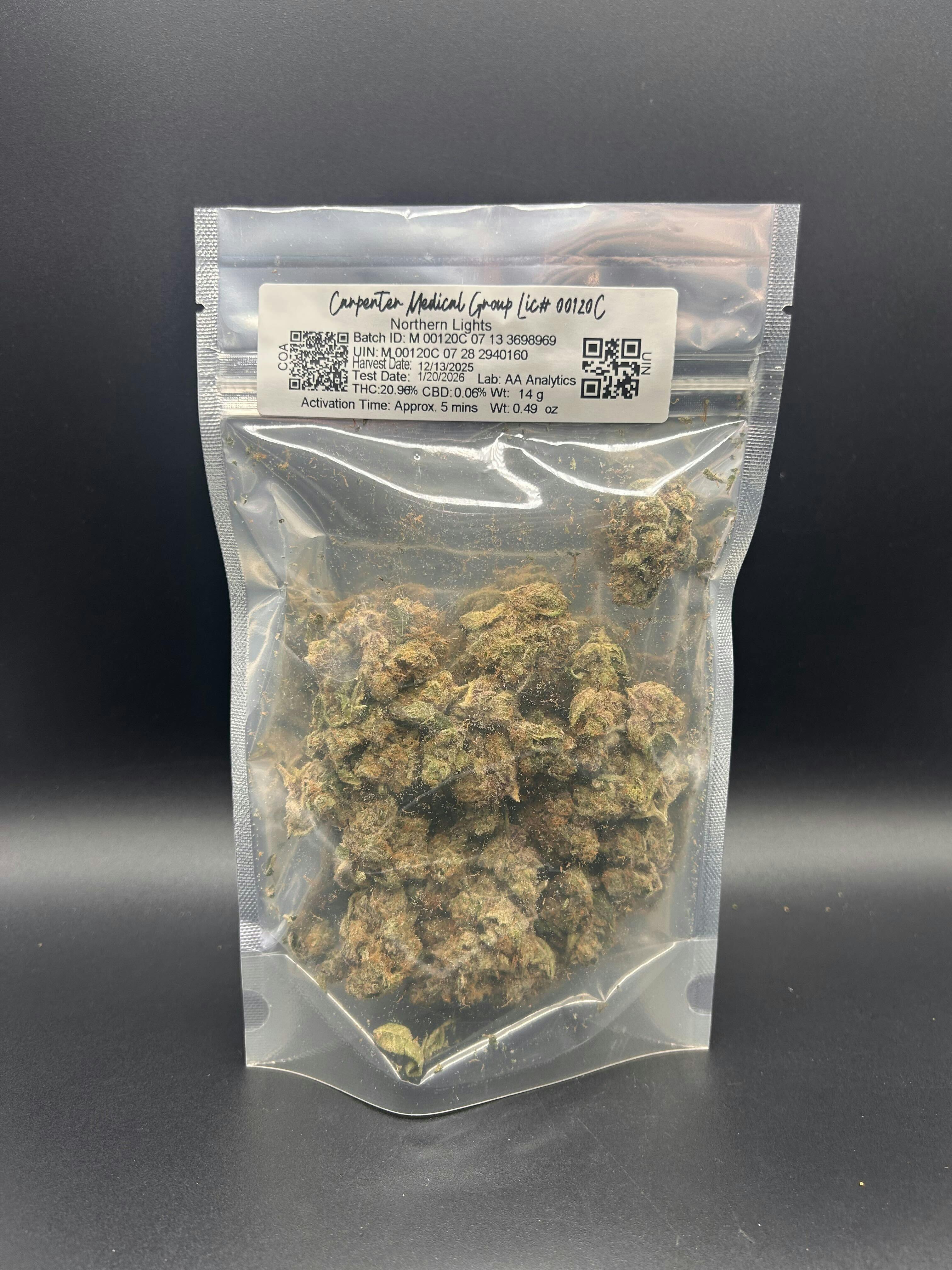 *$55 - 1/2oz. Flower* Northern Lights, 20.96% THC - Carpenter Farms