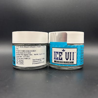 Chill out with Ice VII's THCa Diamond-Infused | Flower. Ice VII is built for those who want to take it all the way up with the hardest-hitting | Flower out there. This isn't your average | Flower | it's blanketed in thca diamonds that are abosolutely pure and potent. Potency for THCa diamonds hit hard in the high 90%, which is why Ice VII is a rocket ship straight to space.