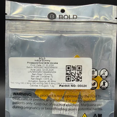 Gummies - 100mg 2:1:1:1:1 - Indica - Pineapple Downside Upcake - BOLD