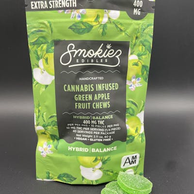 Enhanced with real cannabis terpenes, Smokiez Green Apple Hybrid Fruit Chews are NOT YOUR AVERAGE FRUIT CHEWS™ ;)