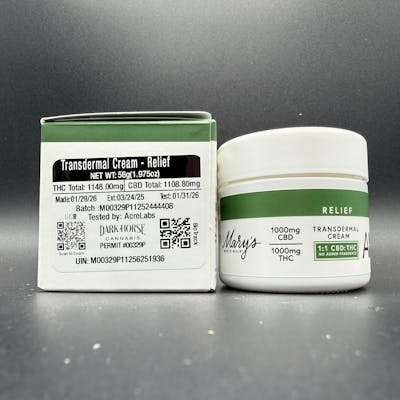 Topical - 1000mg (1:1), Relief Transdermal Cream (CBD:THC) - Mary's Medicinals