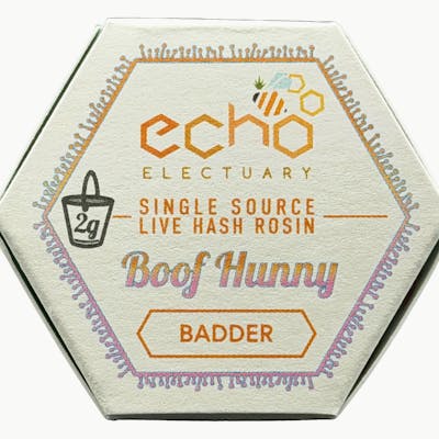 Boof Hunny (Hunny Bunny + Super Boof) * expertly cultivated by Ananda Farms using sustainable practices, fresh frozen at harvest, and processed into a live resin nectar consistency for use in cartridges by Echo Electuary. 9% total terpenes?? *the + indicates a flavor fusion as opposed to a single strain’s lineage