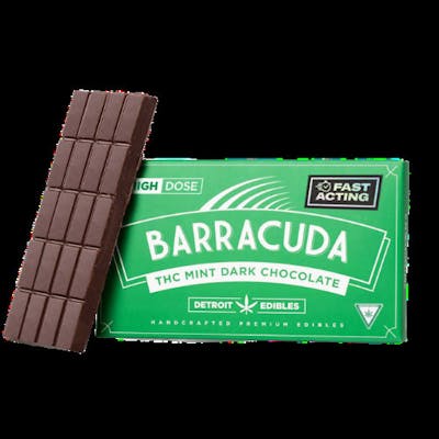 Barracuda Mint Dark Chocolate Bars are crafted from the highest-quality ingredients. These bars are made from deliciously smooth dark chocolate combined with a burst of fresh mint flavor and the purest distillate from our very own Michigan-made Cannalicious Labs for the smoothest consumption experience to date. Created using the latest in nano-emulsion technology, which means you'll feel the effects sooner and with maximum potency due to the increased absorption rate of nano particles. Mint Dark Chocolate 200mg THC Fully activates in 5-15 minutes Ingredients: Ingredients: Sugar, chocolate liquor processed with alkali, cocoa butter, milk fat lecithin, vanillin, natural flavors, mint extract, cannabis extract. Contains milk and soy.
