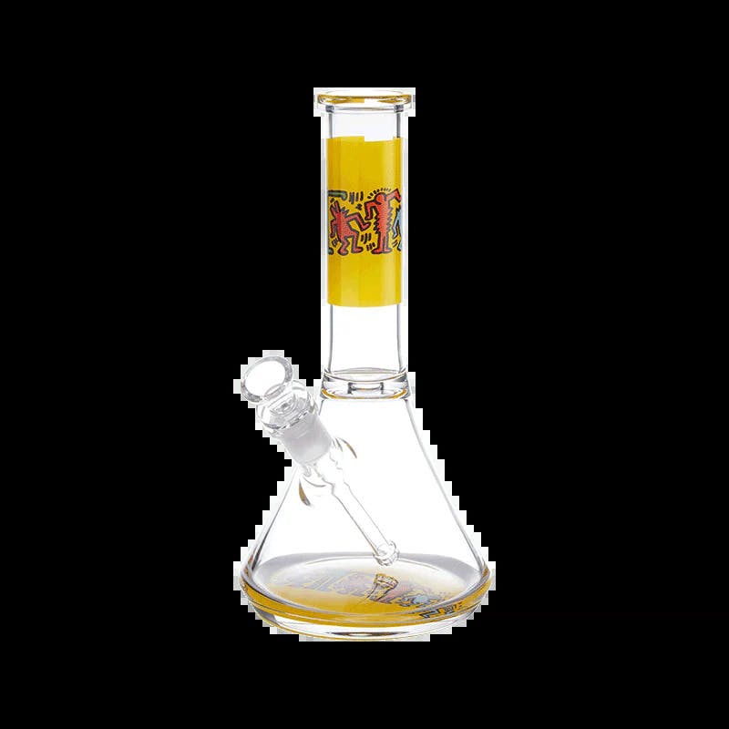 Keith Haring - Glass Water Pipe Beaker Bong - Yellow / Multicolor