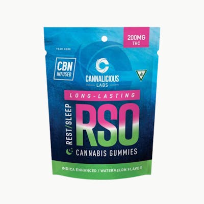 —- About This Product —- These gummies are infused with a full spectrum RSO oil providing incredible medical benefits. This is infused with Cannalicious base RSO, but additional CBN is added to give these gummies even more of a sedative effect than the RSO provides! The potency from the RSO gives these gummies a strong sedative mental and physical state, and the additional CBN helps you drift off to sleep after a short, powerful high. RSO is great to use in gummy form as it covers up the taste of the RSO and is easier to dose as well! RSO is one of the most concentrated forms of edible cannabis available on the market. The medical benefits are extremely powerful as RSO puts you into a deeply sedative state at larger amounts. This is one of the best options for pain relief, and the effects prove to be some of the most powerful on the market. The main complaint about RSO is the unpleasant taste, due to higher amounts of chlorophyll left in the extract than other edible forms. This is why Cannalicious infuses their RSO into gummies to cover up the taste. --------------------------------------------------------------------------------------------------------------------------- —- About The Brand —- Based in Pinconning, Michigan, Cannalicious Labs offers a full line of natural and potent cannabis products that are Grown in Nature and Rooted in Science.Each unique extraction method produces a different result and helps to create our versatile product line, which is then tested for quality to ensure it meets only the highest standards. Cannalicious carries a variety of different concentrates and edibles. They also produce several other brands as well, including Detroit Edibles.
