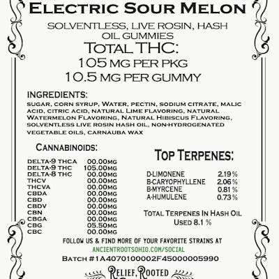Ancient Roots Electric Sour Melon Rosin Gummies 10pk
