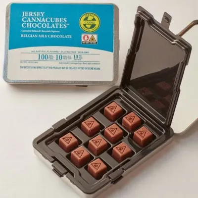 Delicious Belgian milk chocolate. artisanally created in personal sized doses!Each cube is infused with 10mg of CannabisIndividually packed 10 pcs in a food safe tinGluten Free; Non-GMOAvailable in child safe reusable travel tin, made from plate steel - 100% recyclable and reusable.