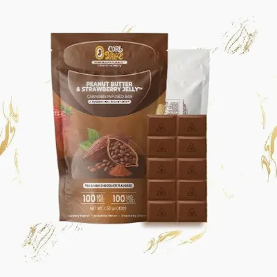 Cannabis-Infused BarThe Core Value – Peanut Butter & Jelly Flavored Cannabis Bar™️ Made with real peanut butter and inspired by the classic sandwich — only better. Includes 10 sections of 10 mg each (total 100 mg of cannabis per bar).100mg THC + 100mg CBD per bar10 breakable sections, 10mg THC eachPB&J flavor infused with creamy milk chocolateMade with real peanut butter for authentic tasteAffordable, flavorful, and crafted for a timeless highPerfect for: Fans of the classic PB&J sandwich who want to enjoy it in a deliciously elevated, chocolate-infused edible.
