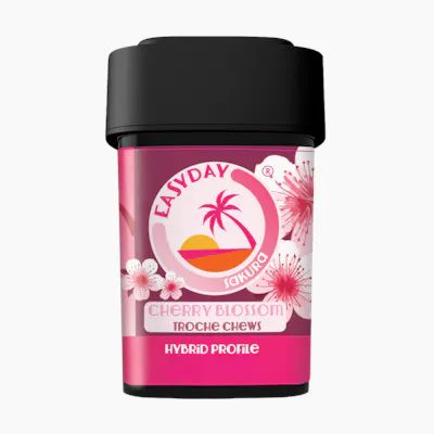 Troche Gummies 30mg THC per gummy · Hybrid Profile Everyday should be an Easy Day. Cherry Blossom season is in bloom. This balanced Hybrid features a delicate Sakura Rose flavor and delivers a smooth lift for the mind and body — perfect for relaxed moments and easy connection. 300mg THC total per container. 300mg THC Total 30mg per Gummy 10 Gummies Terpenes Limonene A-Pinene Beta-Caryophyllene