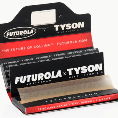 Introducing the 1 1/4 Size Tyson 2.0 x Futurola Rolling Papers, a collaboration that combines the legendary Mike Tyson's passion for superior smoking experiences with Futurola's expertise in crafting exceptional rolling solutions. These rolling papers are designed to elevate your smoking rituals with their top-tier quality, precision, and the mark of excellence that both Tyson and Futurola represent.
