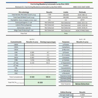 Edibles | Lucky Elixir | Fast Acting | Blueberry Lemonade | 0055